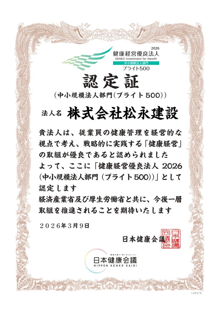 「健康経営優良法人2026(ブライト500)」に認定されました。