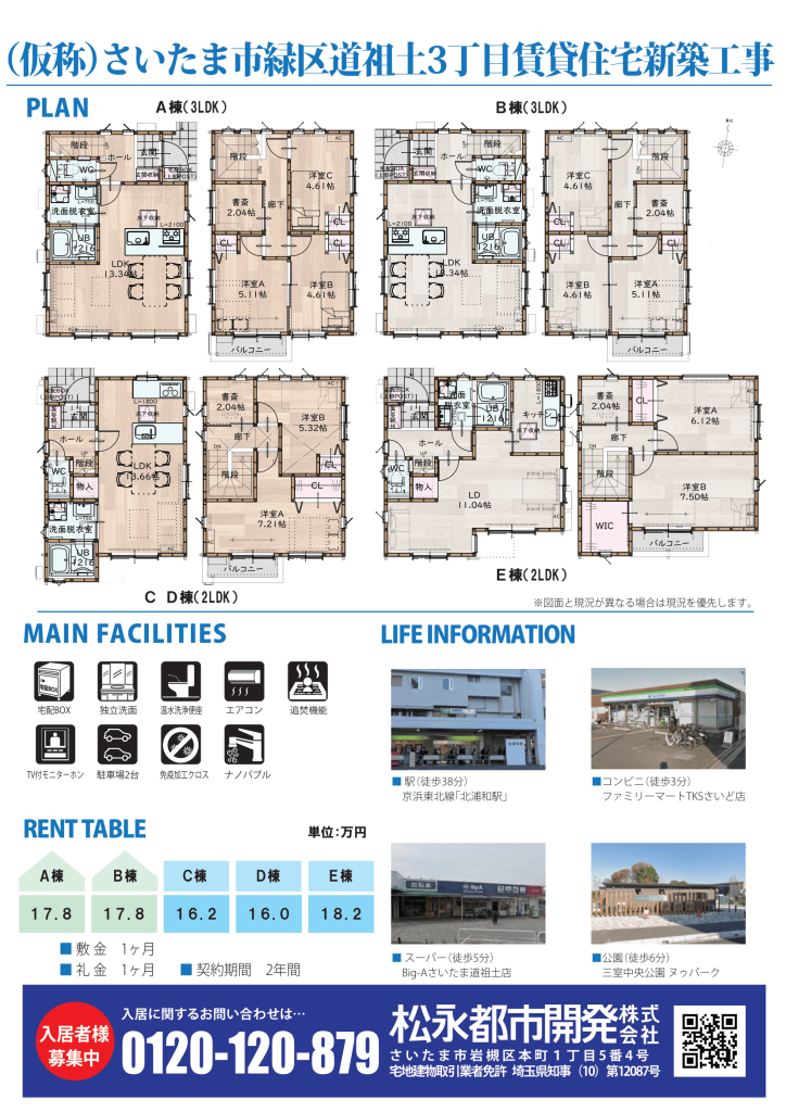 ・2LDKタイプ×3棟、3LDKタイプ×2棟