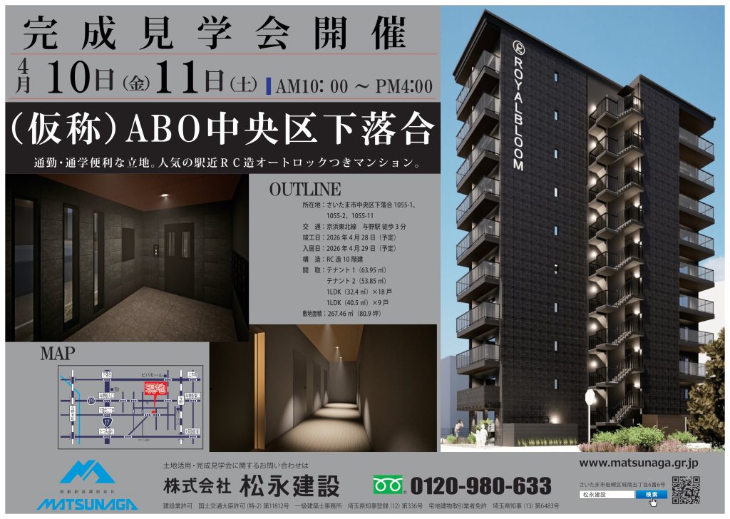 「(仮称)ABO中央区下落合」 が完成いたします。